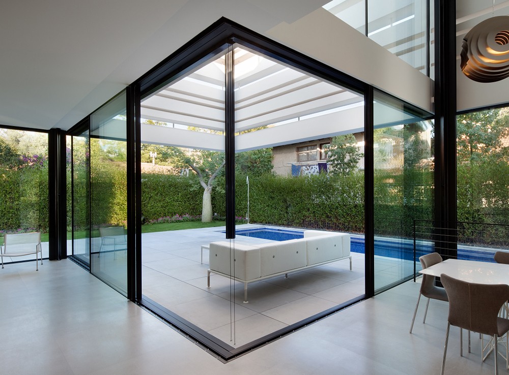 L’apertura delle vetrate, infine, può avvenire manualmente oppure tramite un sistema motorizzato con gestione computerizzata del movimento e delle chiusure; in questo caso, si può optare per vari metodi di apertura come il telecomando, il comando elettrico a parete e addirittura il bioriconoscimento con lettore di impronte digitali.